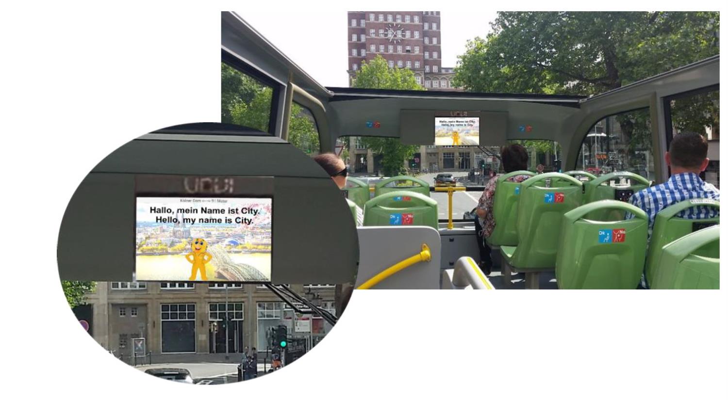 und erzählen unseren Kunden vieles über die Stadtgeschichte und den Sehenswürdigkeiten. Aber was ist im Inneren? Mit unserem System zeigen wir Bilder vom Inneren einzelner Gebäude, Dinge die aus dem Bus so nicht zu erkennen sind.