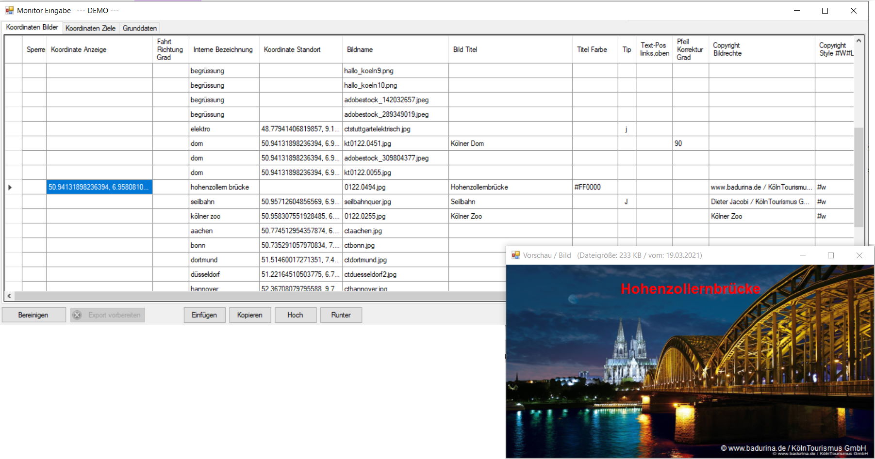 Sie erfassen Koordinaten, Text, Bild und Copyright Rechte. Bilder können über Drag & Drop eingefügt werden. Vor dem Export werden die Bilder automatisch in eine optimale Größe umgewandelt.